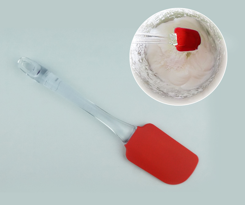 產品優勢: 刮刀的刀頭弧度設計非常標準,輕松刮干凈打蛋盆里的蛋糕,手柄是透明的設計。